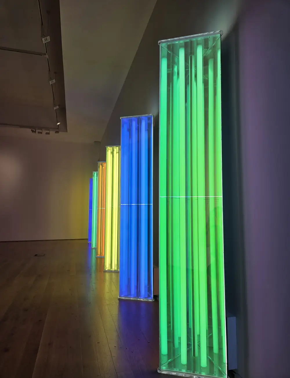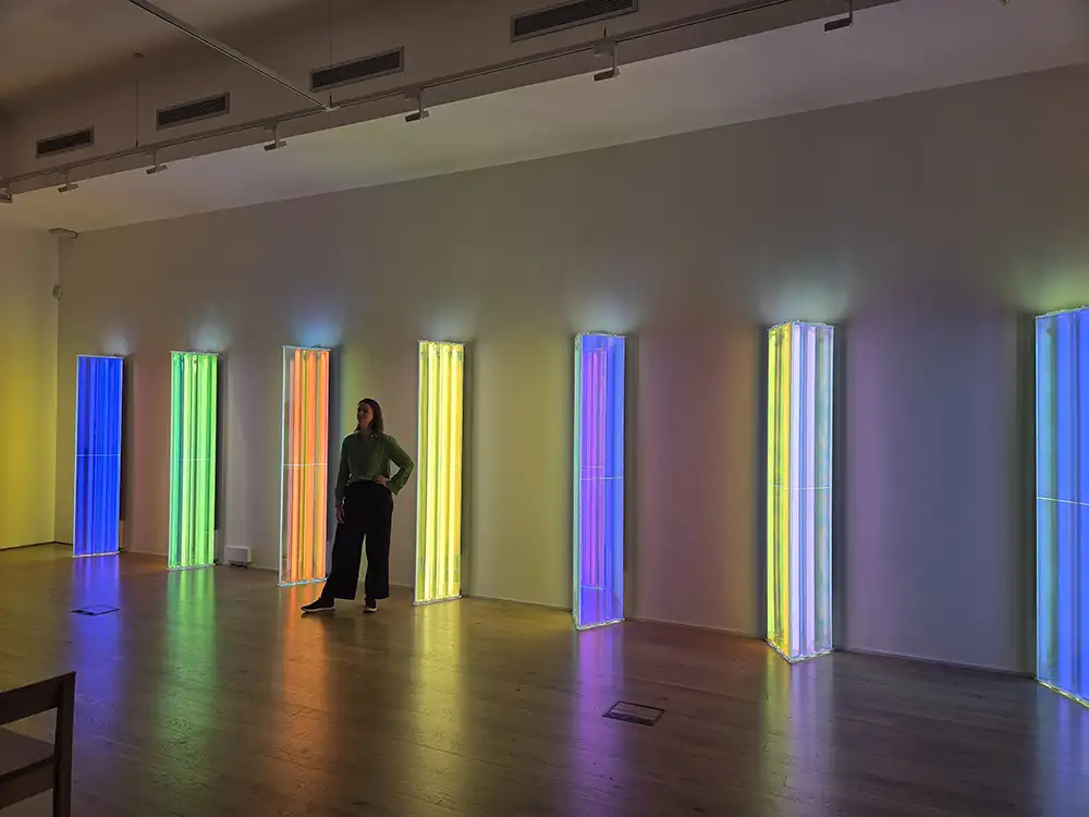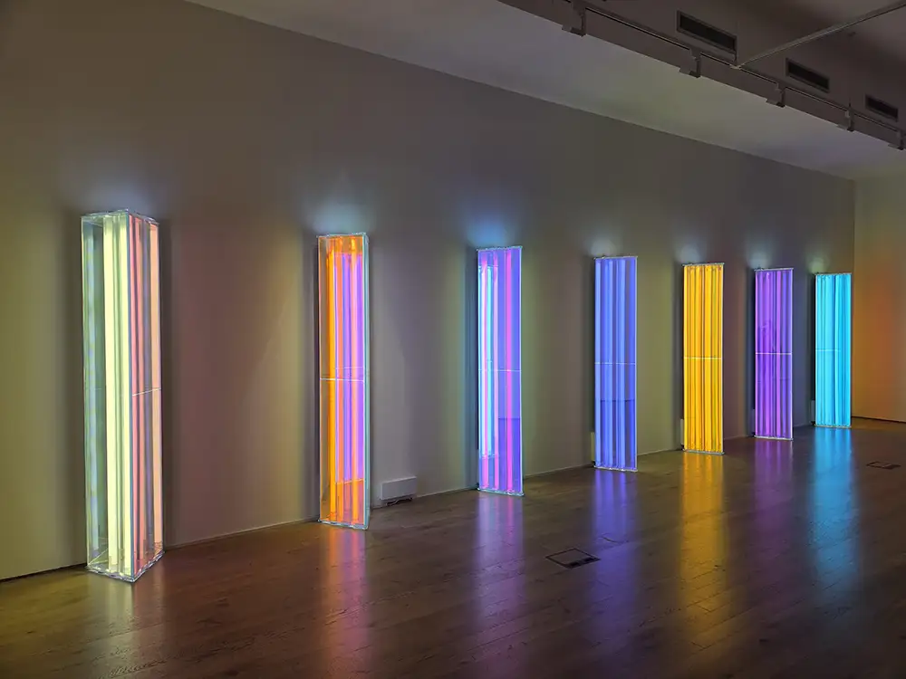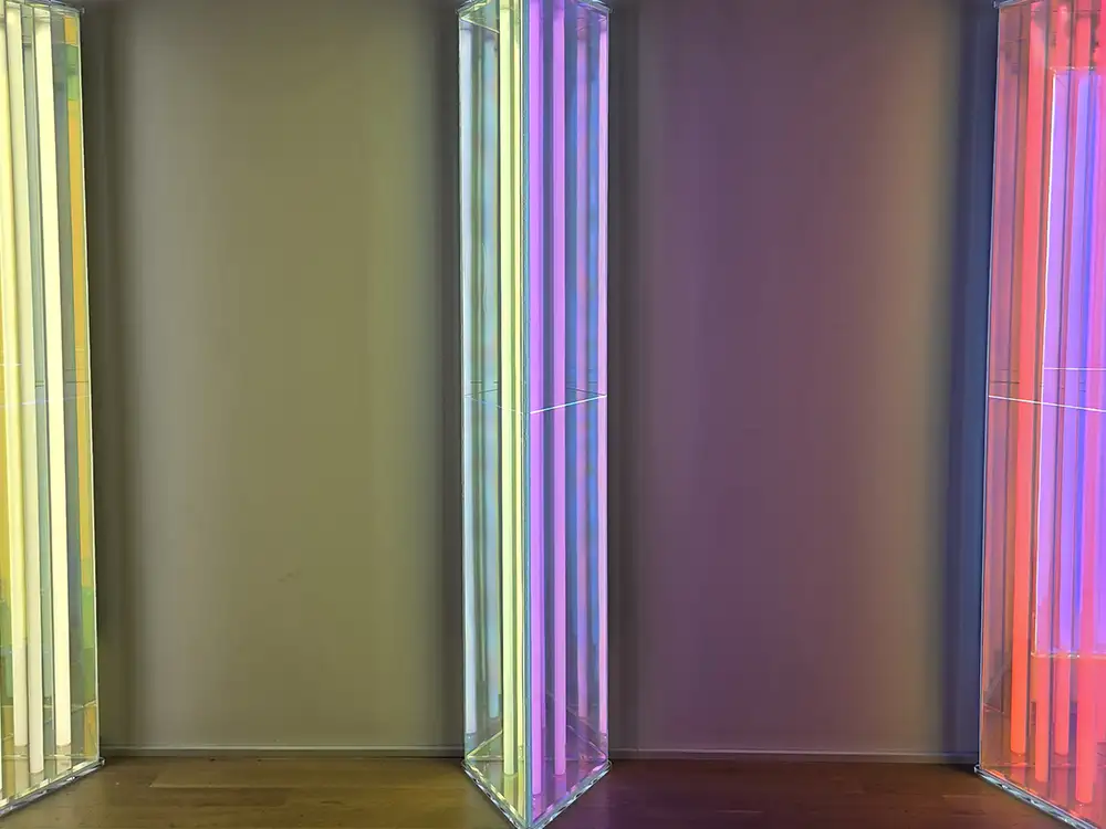 Titled Our Spectral Vision, and commissioned by the Natural History Museum, the work creates a vivid immersive environment that mixes luminous colour and radiant light using a mixture of LED lamps and dichroic glass in the form of seven prisms.