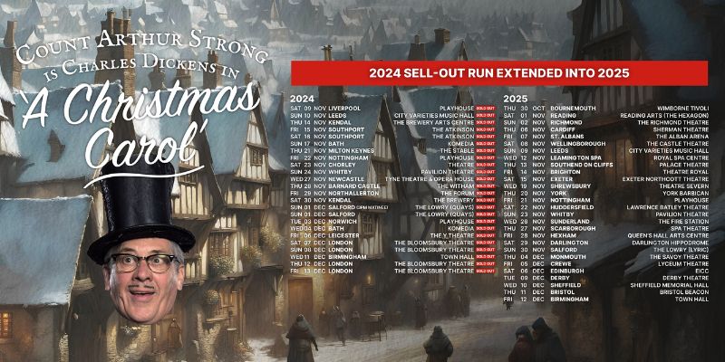Count Arthur Strong announces a new festive run of shows for late 2025 across the UK – ‘Count Arthur Strong is Charles Dickens in ‘A Christmas Carol’. Arthur delivers the Charles Dickens story and follows this with his own adaptation of the most classic of festive tales, A Christmas Carol.