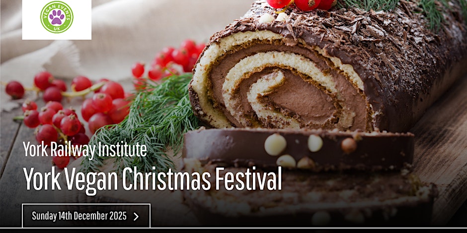 Yorkshire’s biggest Vegan extravaganza is coming to York! The York Vegan Christmas Festival will feature over 50 stalls, with world food caterers, cakes, dairy and meat alternatives, clothing, juice and smoothies, healthy treats and more.