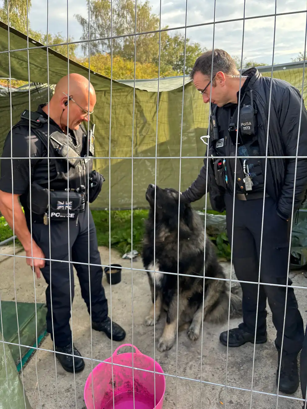As officers entered the site at 6am, they were met by a large shepherd dog who was on his own. Cautious at first, they found he was very friendly. He will be rehomed.