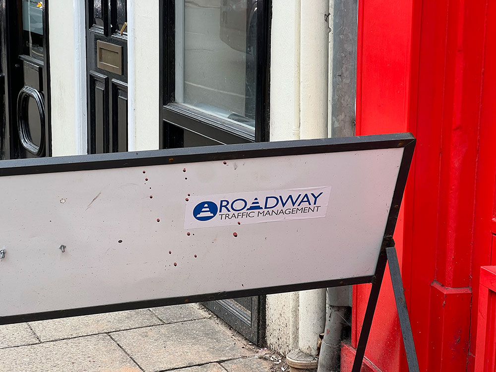 There was another bloodstain in the road, as well as spatter on the back of the sign and on the pavement leading away from the city centre.