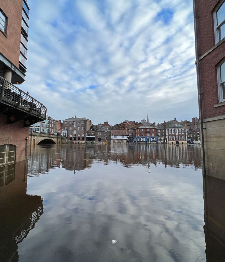 The River Ouse has broken its banks in the usual places. Both King’s Staith and Queen’s Staith are underwater.