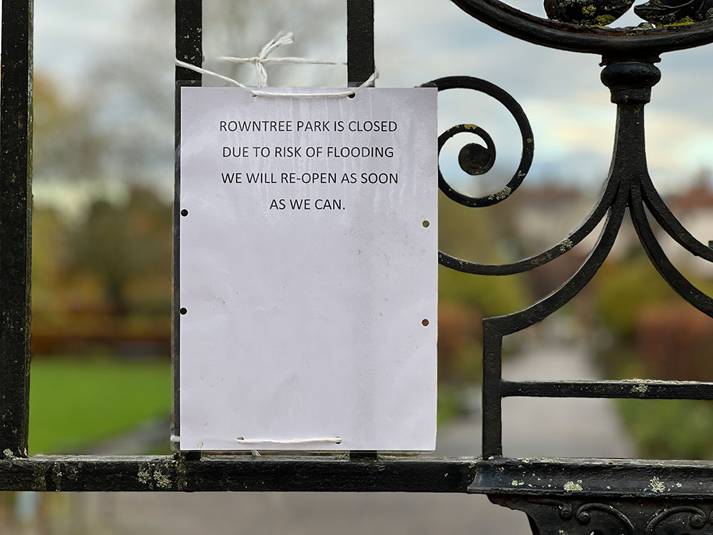 However the park is shut today. A sign on the gates says ‘Rowntree Park is closed due to risk of flooding. We will re-open as soon as we can.”