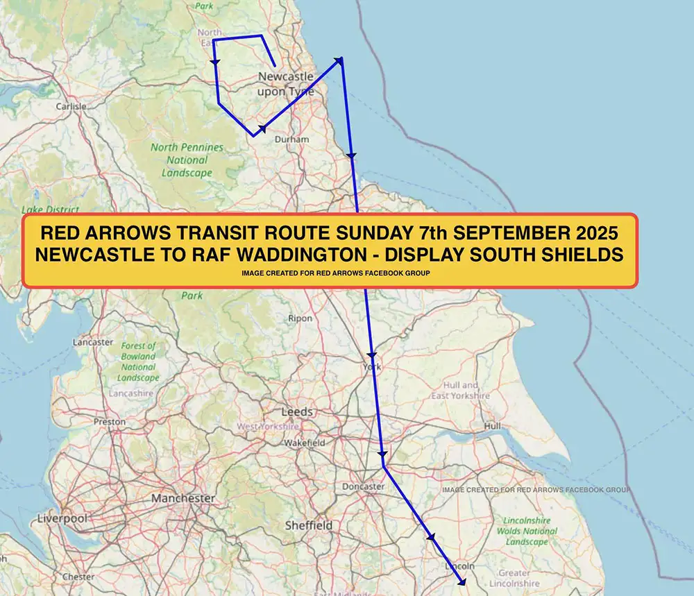 The famous RAF aerobatic display team are set to head back to their Lincolnshire base from the North East during Friday afternoon.