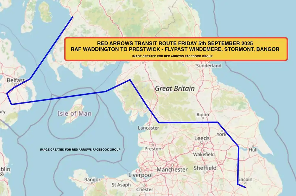 - RAF Waddington To Prestwick – Flypast Windemere, Stormont, Bangor.