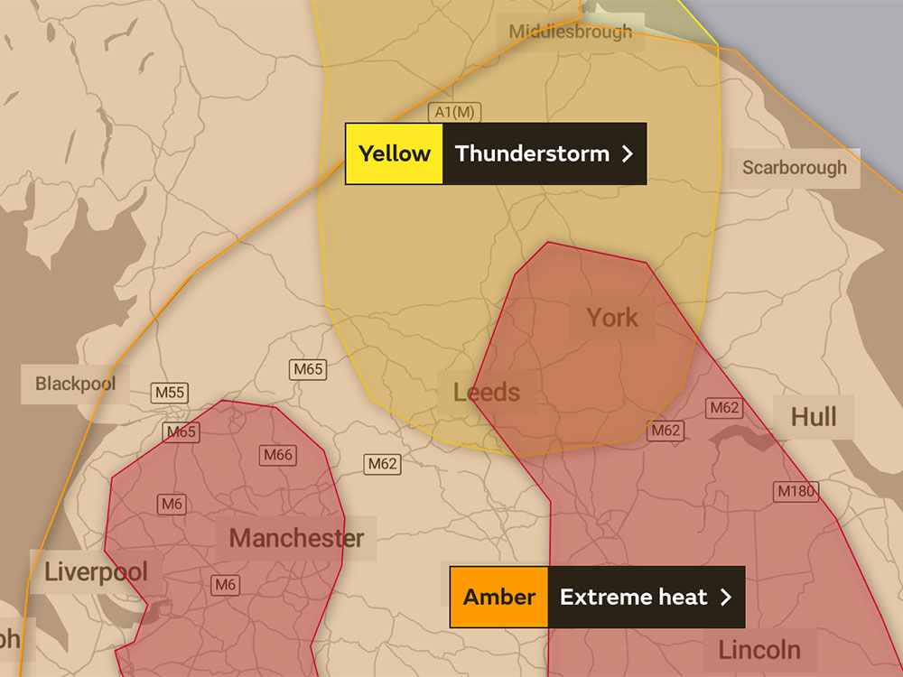 The Met Office has issued a yellow warning for thunderstorms, which covers York and parts of North Yorkshire.