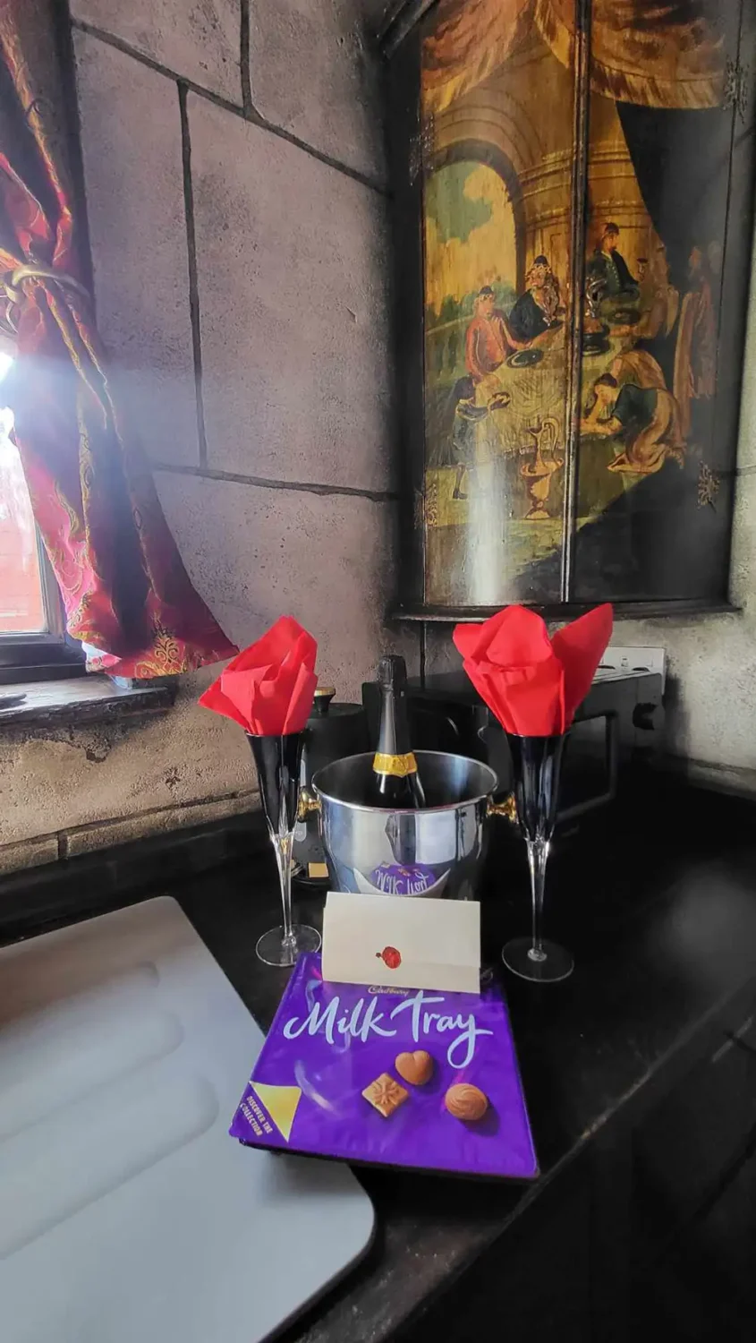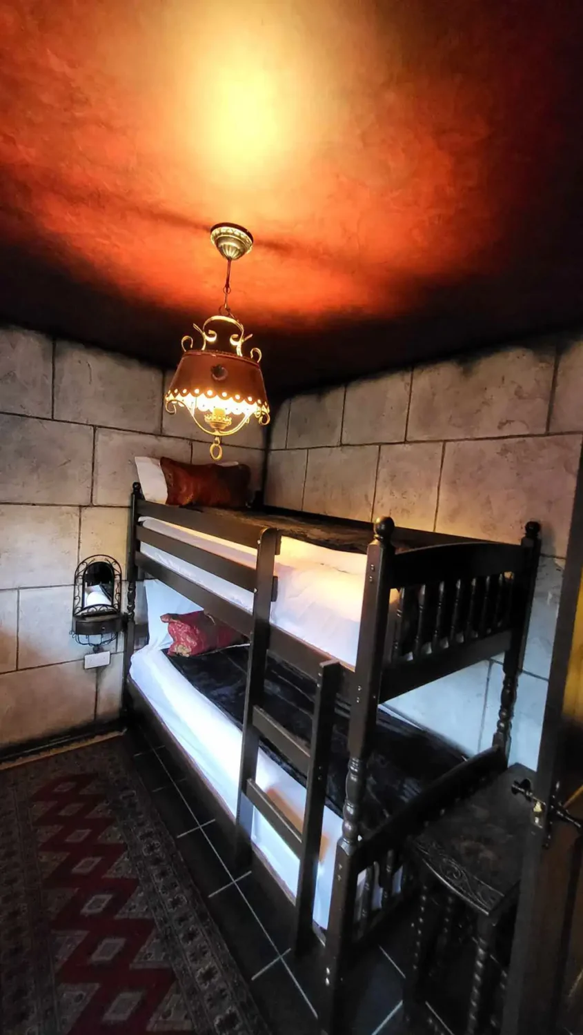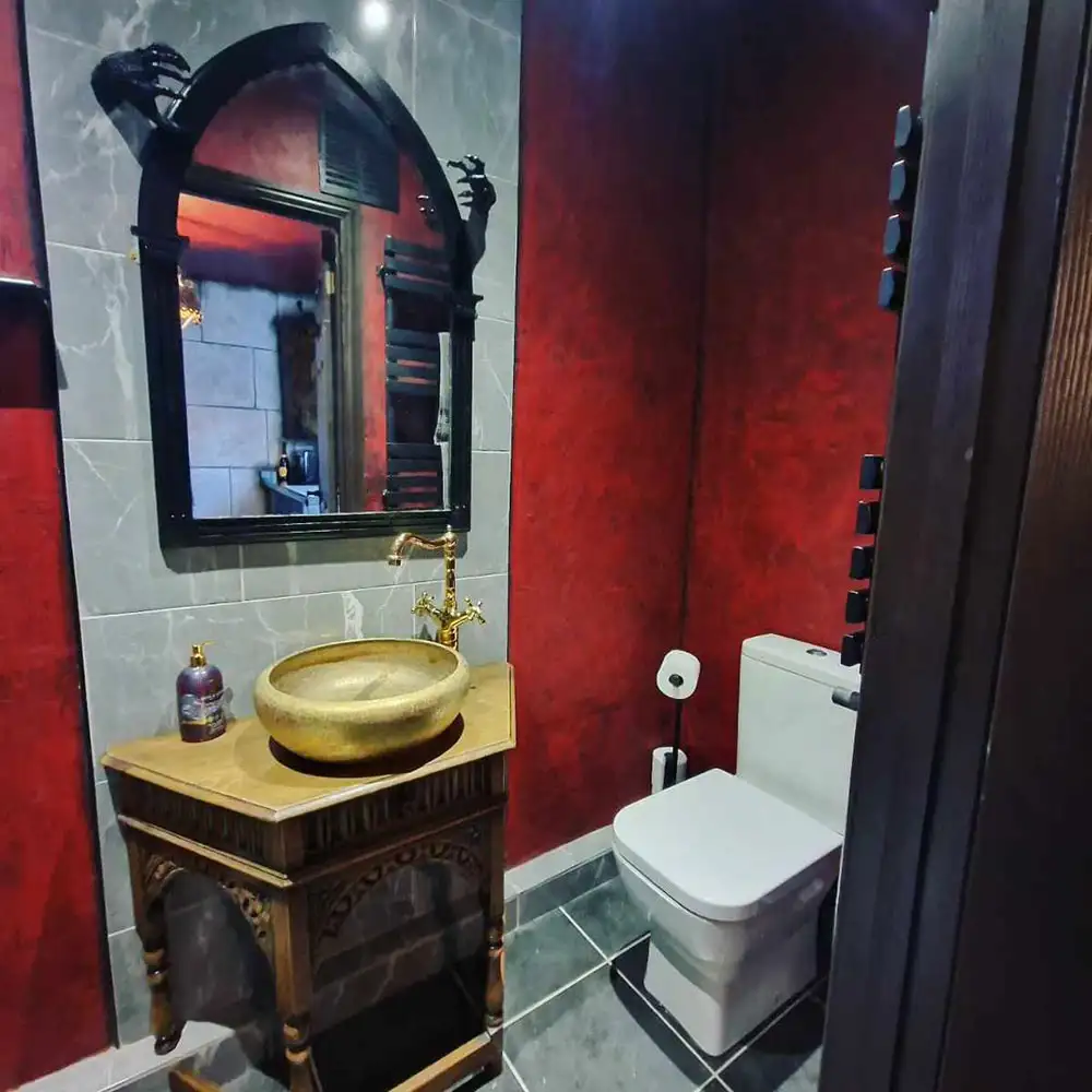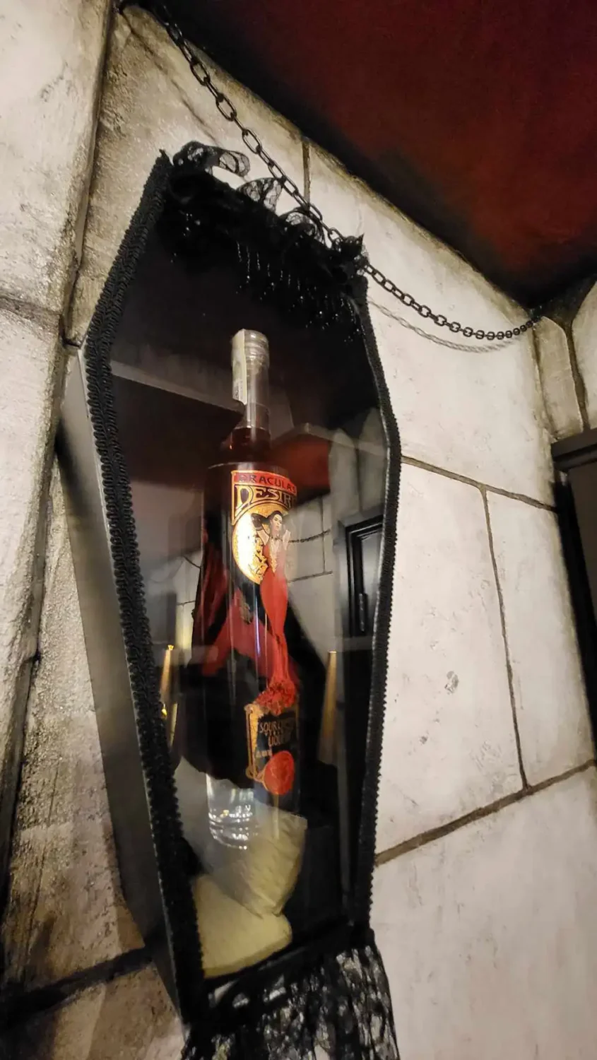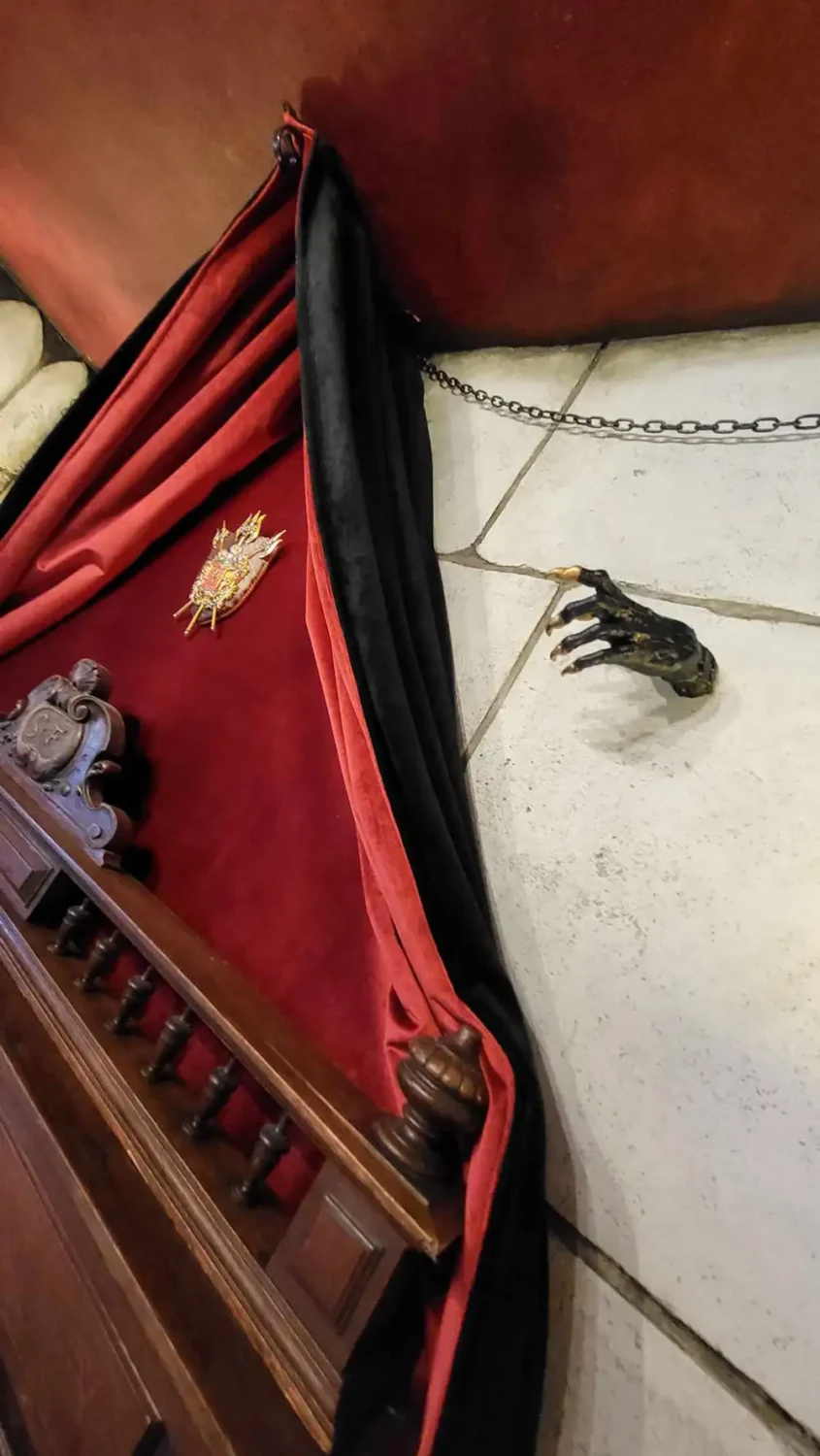 But once inside, it’s like travelling to a strange new world, complete with coffin, castle walls, thrones, gothic decor – and even hands emerging from the stonework.