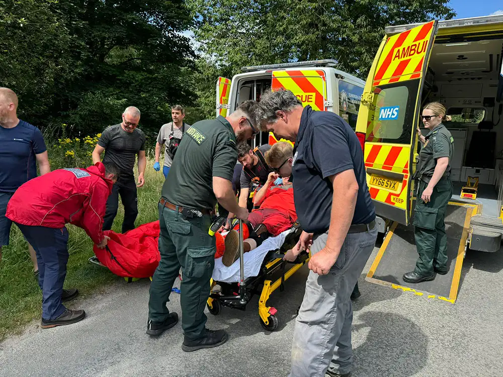 These pictures show the rescue operation after a bus crashed off a North Yorkshire bridge.