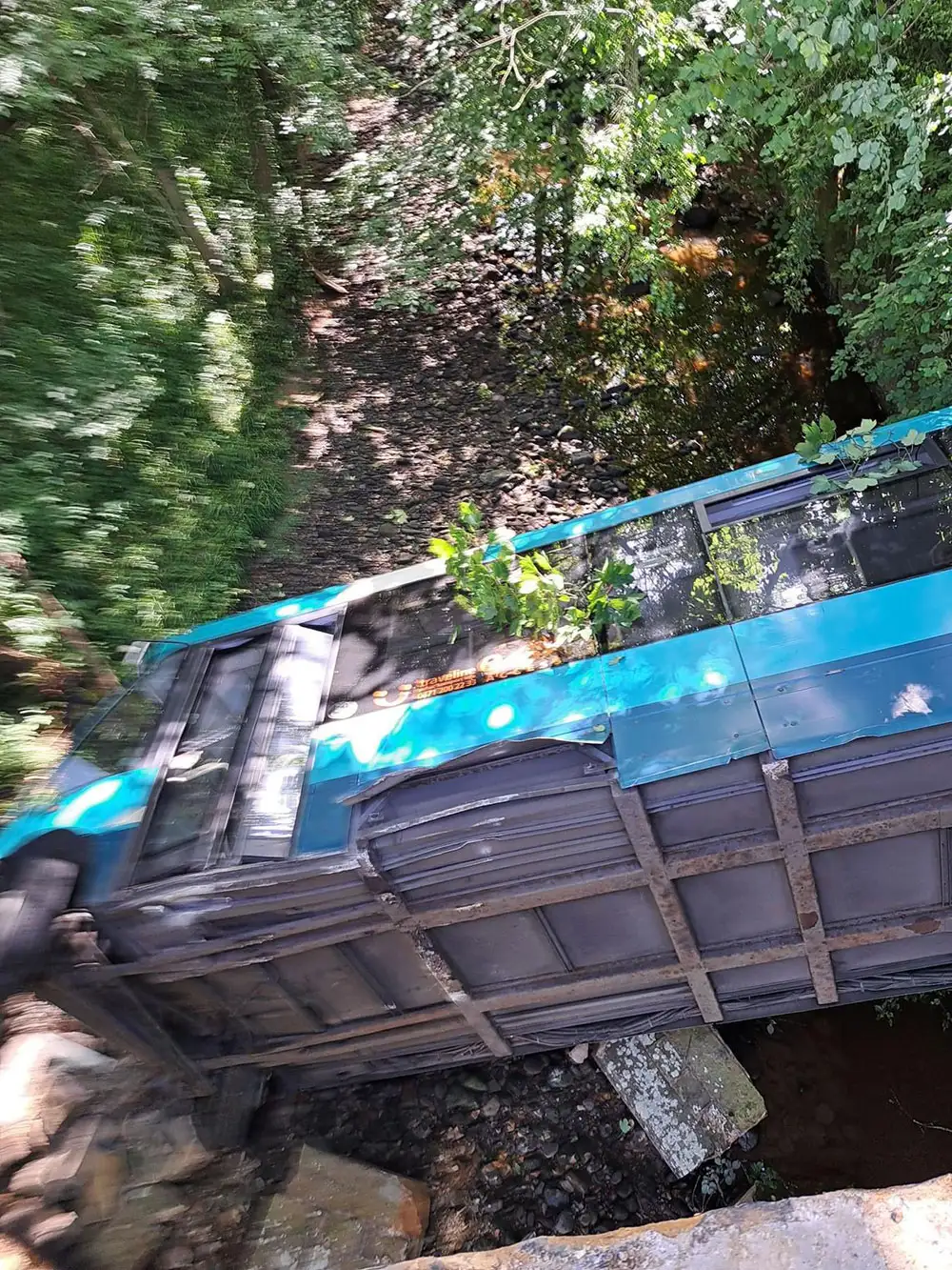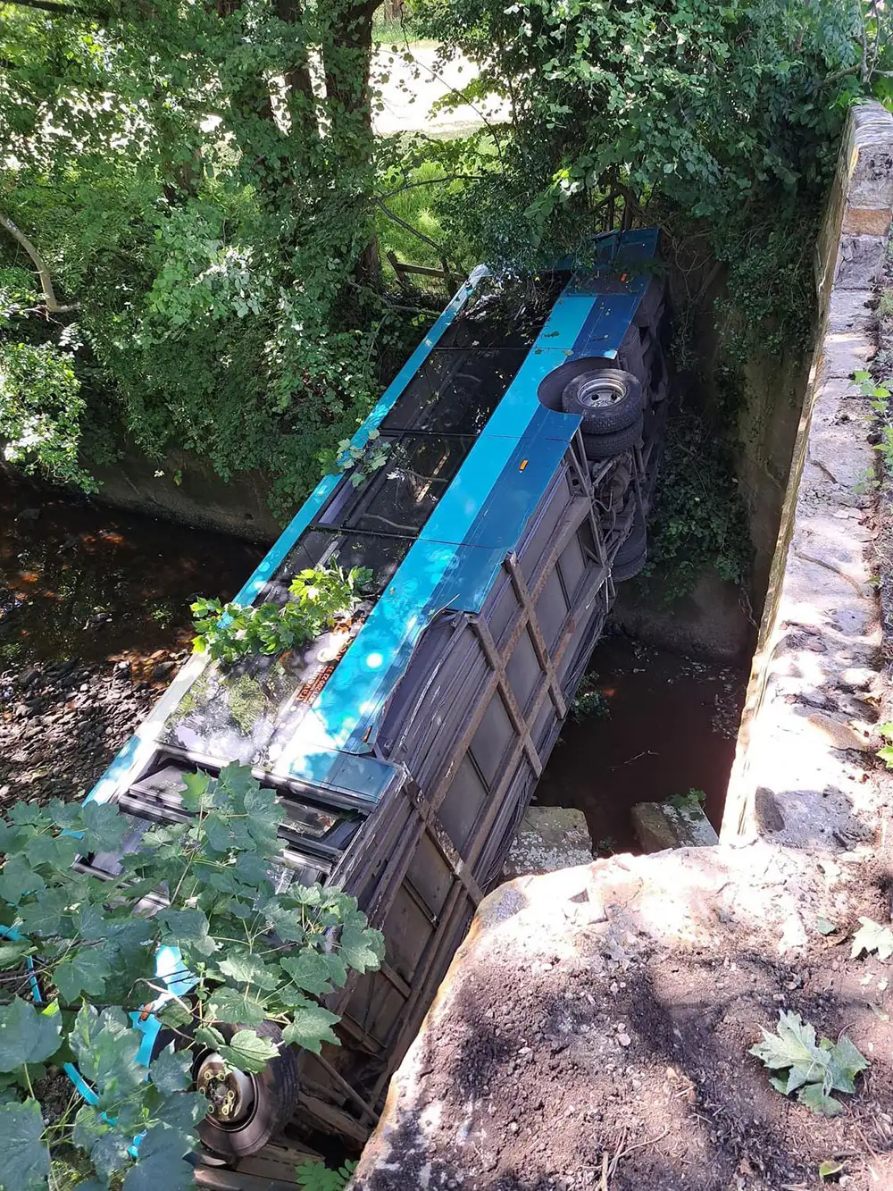 The bus, believed to be an Arriva North East 96 service, crashed through a bridge at Front Street and into the shallow River Esk below.
