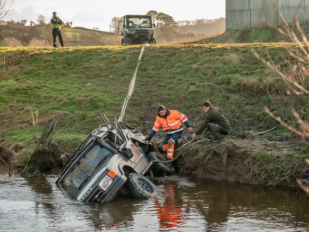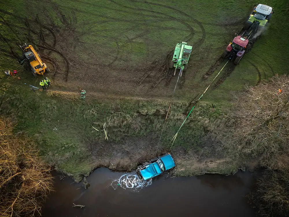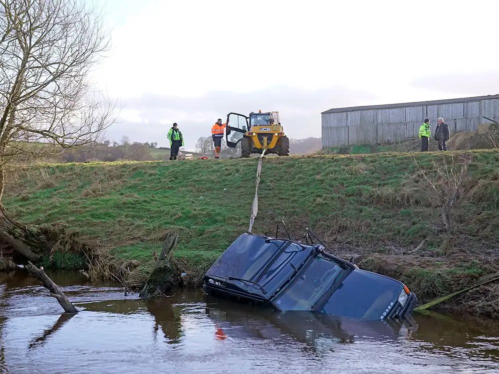 Police were at the scene today (Friday) where the Land Rover was removed by four other vehicles – including two tractors – using tethers.