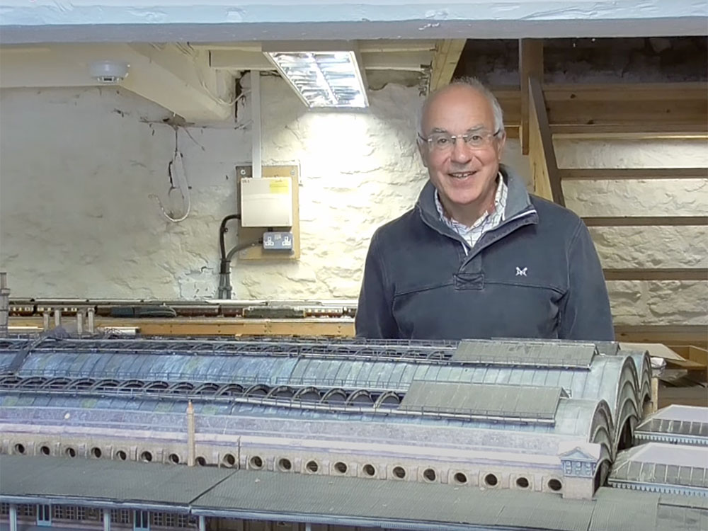 The centrepiece is the amazing curved roof of the station. Giles explains in the video this was a three man job, including himself, an architect friend who designed it, and Peter Smith of Kirtley models who created it in kit form.