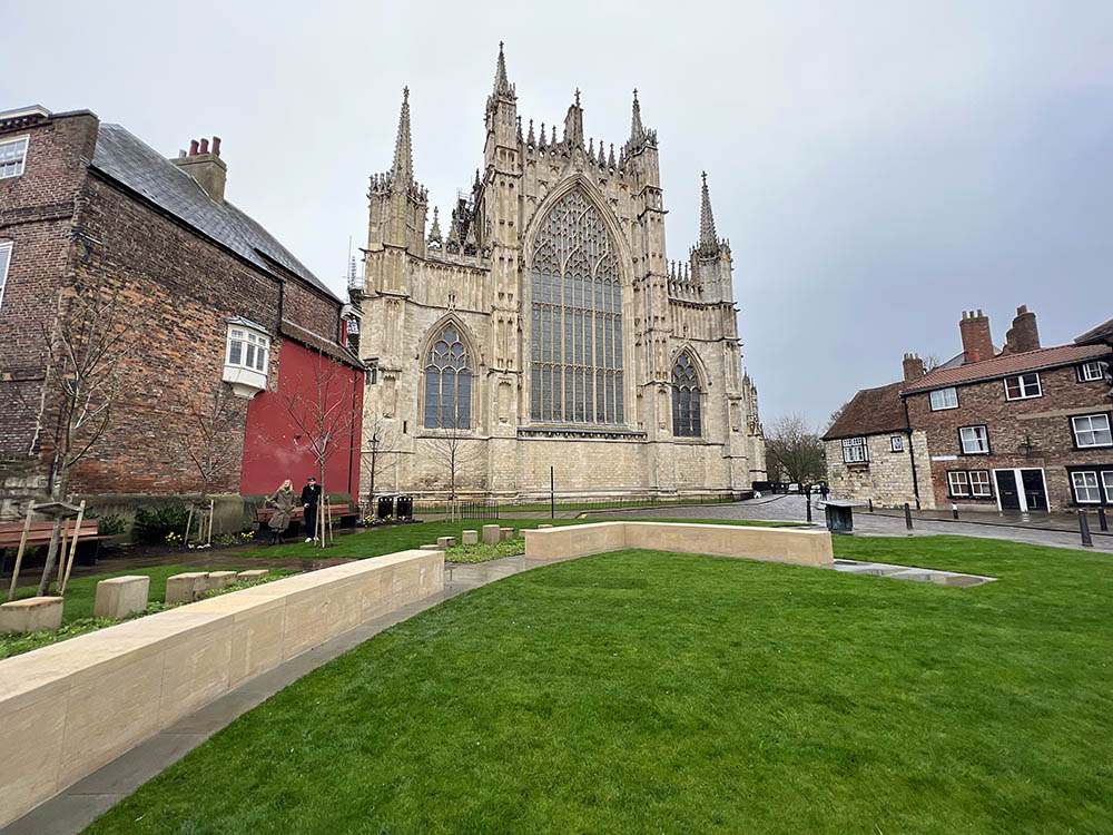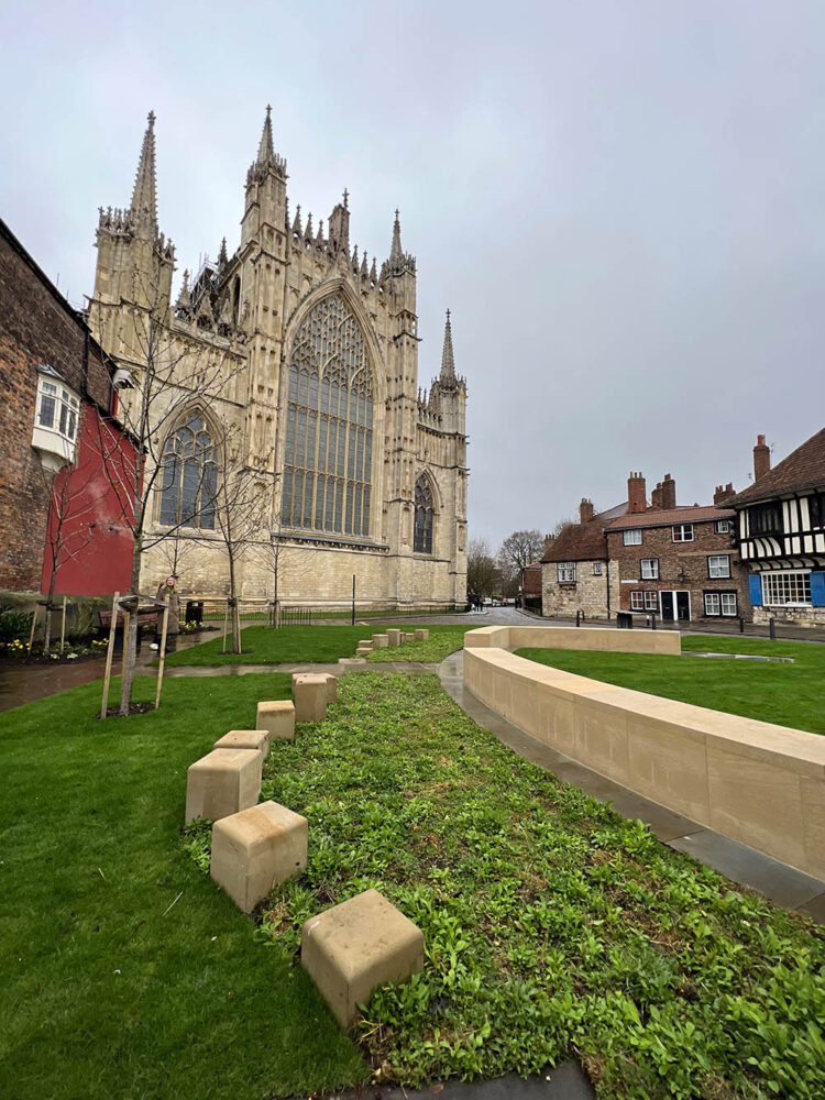 Found on College Green next to York Minster, the area has been transformed with old unwell trees removed, new trees planted, stone seating, wildflowers and stepping stones.