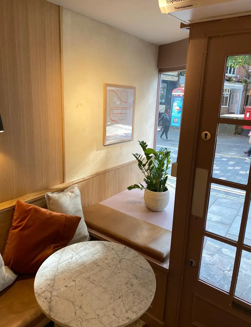 The refurbishment of the Colliergate bakery includes large window frontage, leather-upholstered banquet style seating for up to 15 visitors, a porcelain-tiled floor, oak panelling, and there are USB power points throughout the bakery for charging mobiles and tablet devices.