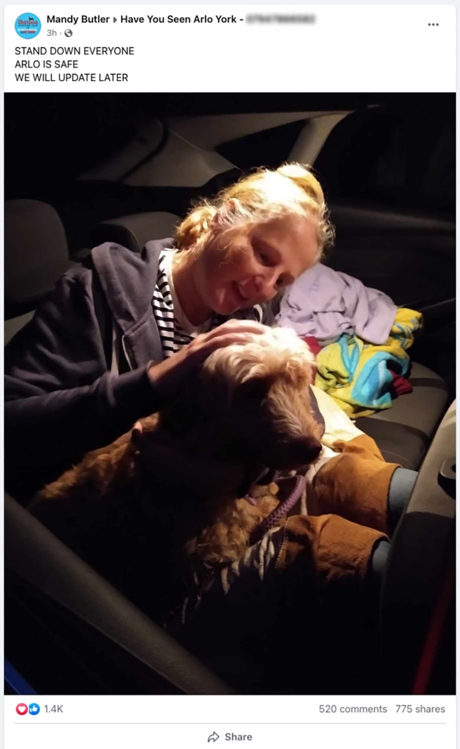 This morning (Thursday 17 August) the Have You Seen Arlo York Facebook page announced he had been found returned to his owners Antony and Manon Smith.