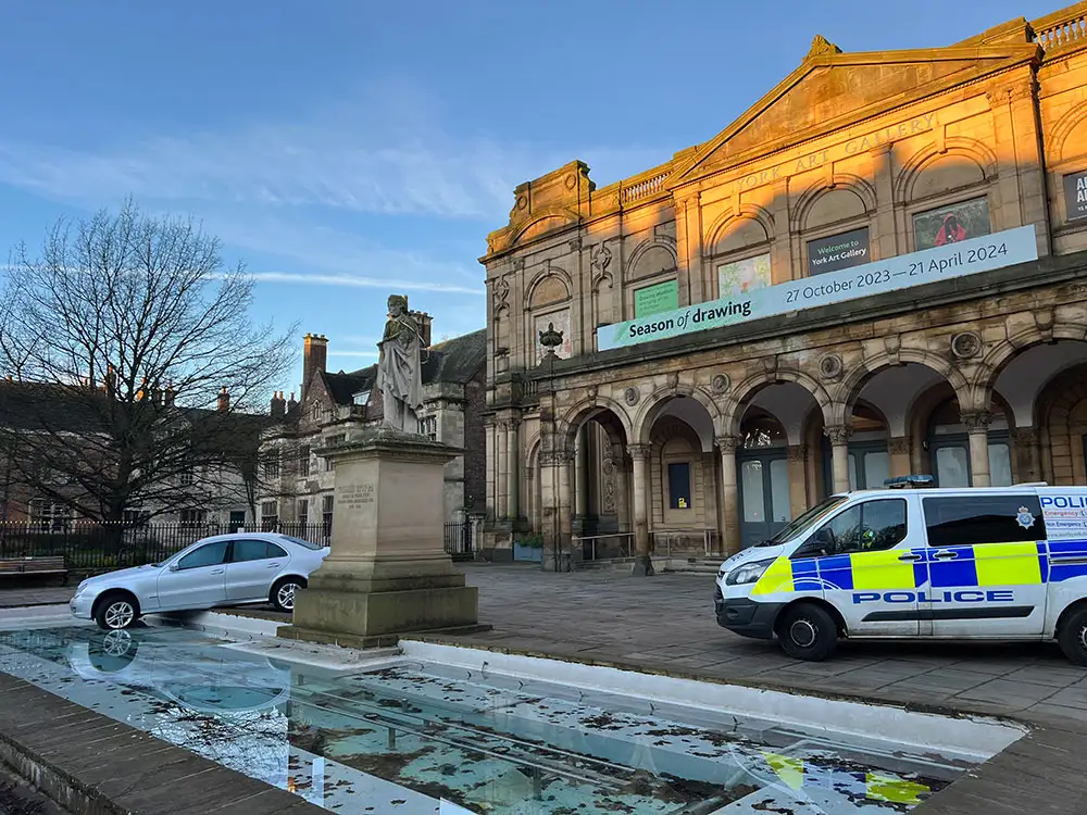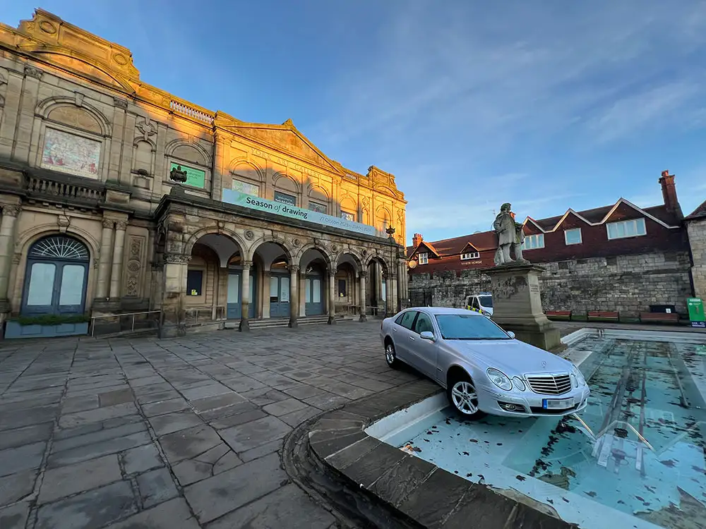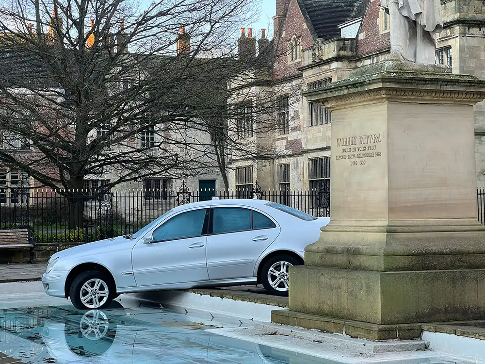 It was stuck next to the statue of William Etty outside York Art Gallery. There was no sign of the driver or any other occupants.